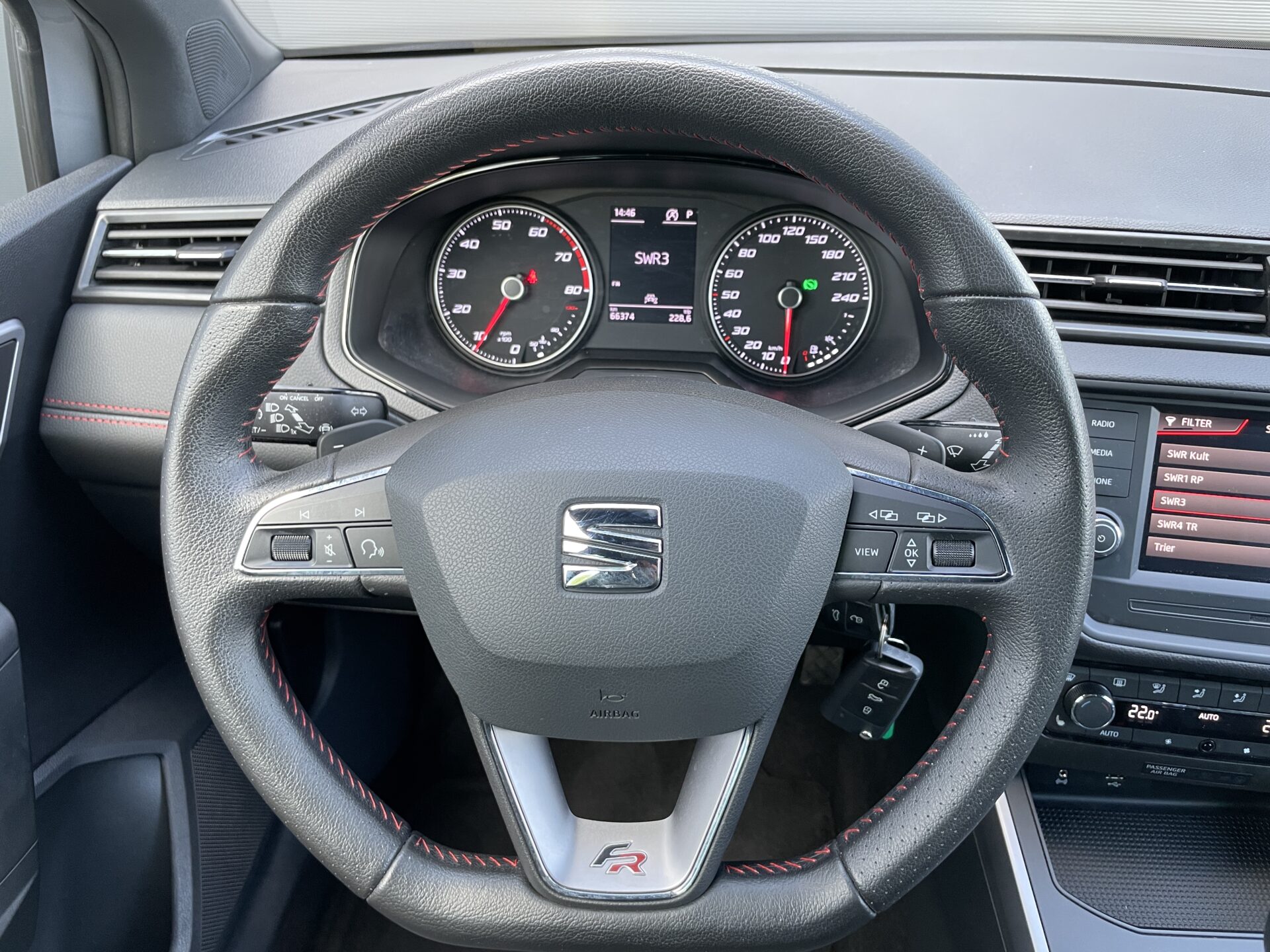 3. Bremsleuchte, Airbag Beifahrerseite abschaltbar, Airbag Fahrer-/Beifahrerseite, Ambiente-Beleuchtung LED, Antriebs-Schlupfregelung (ASR), Armaturentafel Leder-Optik, Außenspiegel Dachfarbe, Außentemperaturanzeige, Bordcomputer, Bremsassistent, Chromleisten an Seitenfenstern, Dachhimmel schwarz, Dachreling, Einschaltautomatik für Fahrlicht, Elektr. Bremskraftverteilung, Elektron. Querdifferentialsperre (XDS), Fahrassistenz-System: Berganfahr-Assistent (Hill-Holder), Fahrassistenz-System: Fahrprofilauswahl (SEAT Drive Profile), Fahrassistenz-System: Multikollisionsbremse (Multi Collision Brake), Fahrassistenz-System: Umfeldbeobachtungssystem (Front assist) mit City-Notbremsfunktion, Gepäckraumabdeckung / Rollo, Geschwindigkeits-Begrenzeranlage, Heckleuchten LED, Heckscheibe heizbar, Heckscheibenwischer, Innenausstattung: Chrom-Applikationen, Innenraumfilter: Pollenfilter, Isofix-Aufnahmen für Kindersitz, Karosserie: 5-türig, Klima-Komfort-Paket, Kofferraumbeleuchtung, Kombiinstrument digital (8 Zoll), Kopf-Airbag-System, Kopfstützen hinten, Kopfstützen vorn, Lenkrad (Leder) mit Multifunktion, Lenksäule (Lenkrad) höhenverstellbar, Lenksäule (Lenkrad) verstellbar, LM-Felgen, Motor 1,0 Ltr. – 85 kW TSI, Otto-Partikelfilter (OPF), Radstand 2566 mm, Reifendruck-Kontrollsystem, Reifenkontroll-Anzeige, Rücksitzlehne geteilt/klappbar (1/3-2/3), Schadstoffarm nach Abgasnorm Euro 6d-TEMP, SEAT Media-System Touch Colour, Seitenairbag, Sitze vorn höhenverstellbar, Sprachsteuerungs-System, Start/Stop-Anlage, Steckdose (12V-Anschluß) vorn, Stoßfänger FR-Design, Türgriffe außen lackiert, Wärmeschutzverglasung
