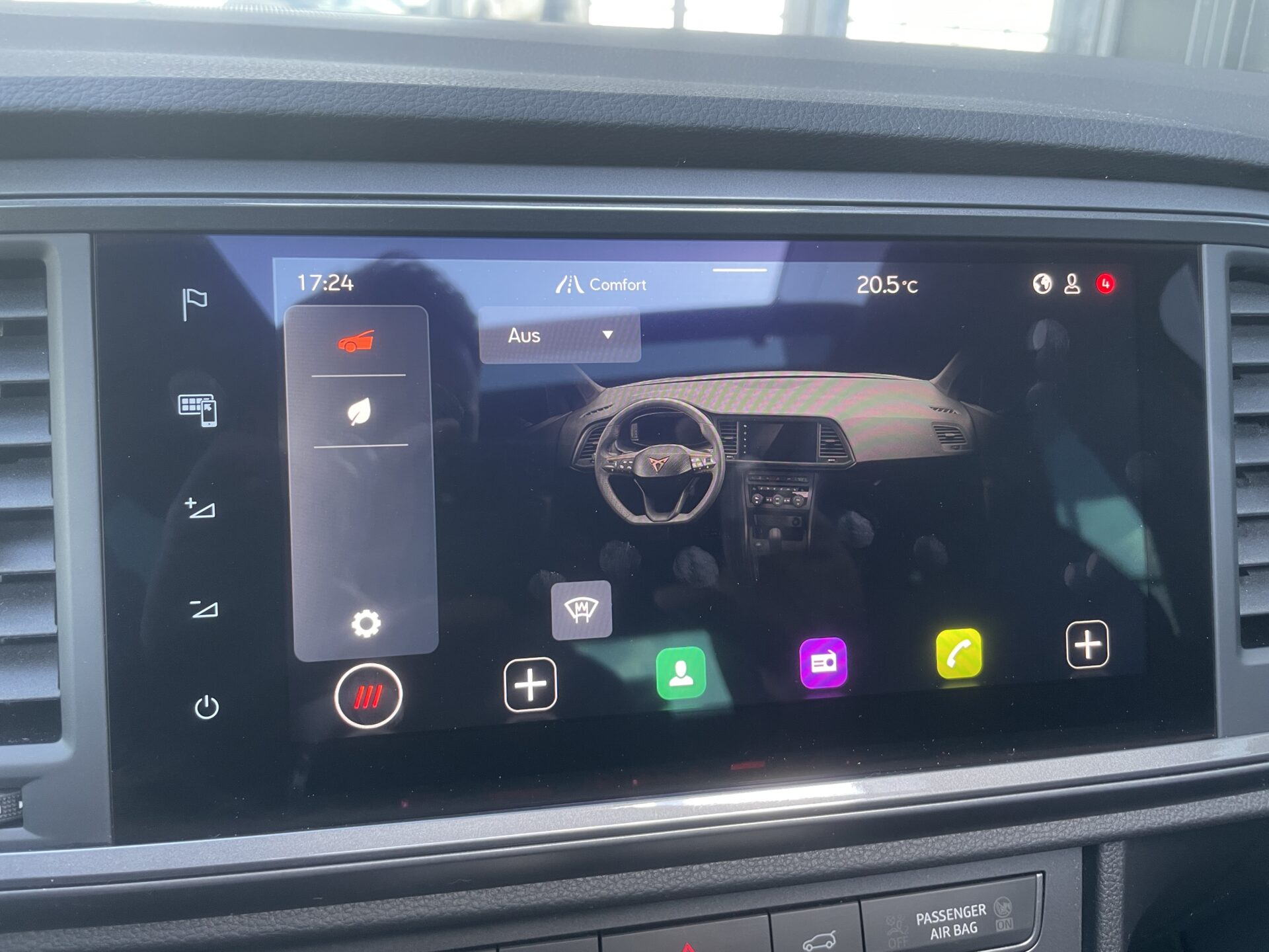 3. Bremsleuchte, Ablagetasche an Vordersitzlehnen, Airbag Beifahrerseite abschaltbar, Airbag Fahrer-/Beifahrerseite, Ambiente-Beleuchtung LED, Antriebs-Schlupfregelung (ASR), Audio-Navigationssystem mit Touchscreen Farbbildschirm, Außenspiegel elektr. verstell-, heiz- und anklappbar mit Spiegelabsenkung und Welcome Light, Bluetooth-Schnittstelle mit Freisprecheinrichtung integriert, Bordcomputer, Brillenfach, Dachhimmel schwarz, Dachreling schwarz, Doppeltonhorn, Einstiegsleisten (Aluminium) vorn, beleuchtet, Elektron. Differentialsperre (XDS), Fahrassistenz-System: Adaptive Fahrwerksregelung (DCC), Fahrassistenz-System: Fahrprofilauswahl (CUPRA Drive Profile), Fahrassistenz-System: Parklenkassistent mit Einparkhilfe vorn und hinten inkl. Rückfahrkamera, Fensterheber elektrisch vorn + hinten mit Komfortschaltung, Full Link (MirrorLink, Apple CarPlay und Android Auto), Fußraumbeleuchtung LED, Gepäckraumabdeckung / Rollo, Handschuhfach mit LED-Beleuchtung, Heckleuchten LED mit dynamischem Blinklicht, Heckspoiler Wagenfarbe (Dachspoiler), Induktionsladeschale für Smartphone, Isofix-Aufnahmen für Kindersitz an Rücksitz, Kamerasystem Umgebungsansicht (Top View, 360°), Karosserie: 5-türig, Klimaanlage Climatronic 2-Zonen, Knieairbag Fahrerseite, Kombiinstrument digital (virtual cockpit), Kopf-Airbag-System, Lendenwirbelstütze Sitz vorn links, verstellbar, Lendenwirbelstütze Sitz vorn rechts, verstellbar, Licht- und Sicht-Paket, Mittelarmlehne hinten, Mittelkonsole vorn mit Mittelarmlehne, Becherhalter, Ablagebox und Luftausströmer hinten, Mobile Online Dienste Cupra Connect plus, Modellpflege, Motor 2,0 Ltr. – 221 kW 16V TSI, Notrufsystem, Otto-Partikelfilter (OPF), Parkbremse elektrisch, Pedale Aluminium-Design, Radlaufabdeckung vorn und hinten lackiert, Radstand 2631 mm, Rücksitzlehne geteilt/klappbar (1/3-2/3), Schadstoffarm nach Abgasnorm Euro 6e, Schriftzug auf der Heckklappe, Seitenairbag, Seitenscheiben hinten und Heckscheibe abgedunkelt, Sitz vorn links höhenverstellbar, Sitz vorn rechts höhenverstellbar, Sonnenblende links mit Spiegel (beleuchtet), Sonnenblende rechts mit Spiegel (beleuchtet), Sport-Schalensitze vorn mit integrierten Kopfstützen, Start/Stop-Anlage, Steckdose (12V-Anschluß) vorn, Stoßfänger hinten Cupra-Design mit Diffusor, Stoßfänger vorn Cupra-Design, USB-Ladeanschlüsse (2-fach, Typ C) für 2.Sitzreihe, Verzurrösen Koffer-/Laderaum, Wärmeschutzverglasung, Leichtmetallräder, Sitze: Top-Sportsitze vorn, Nebelscheinwerfer, Seitenscheiben hinten und Heckscheibe abgedunkelt