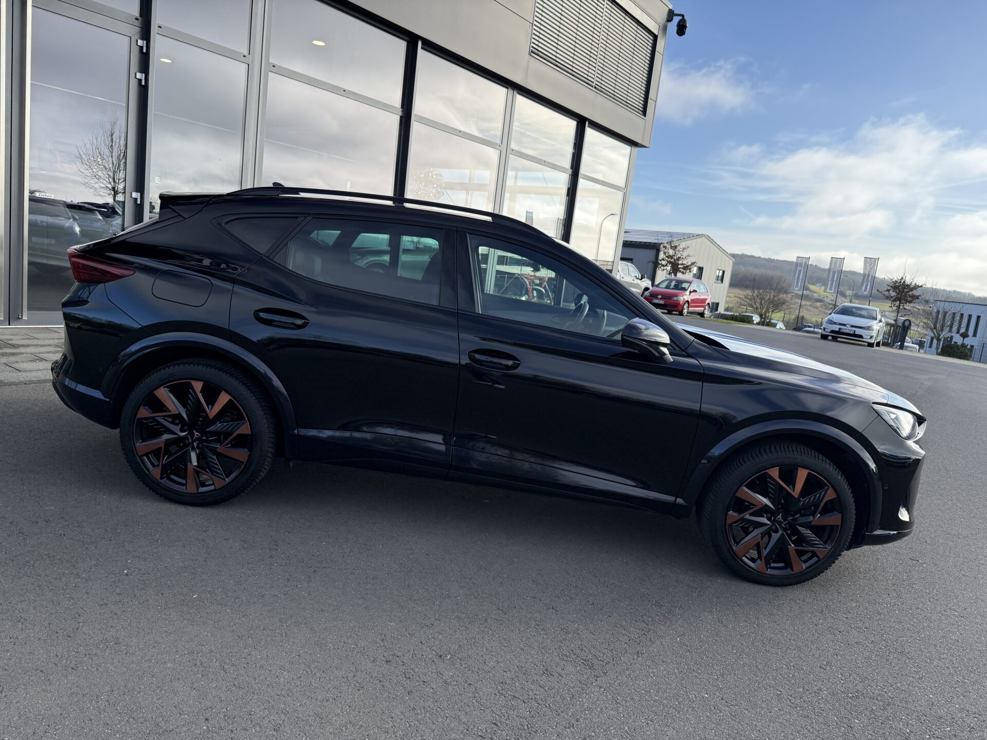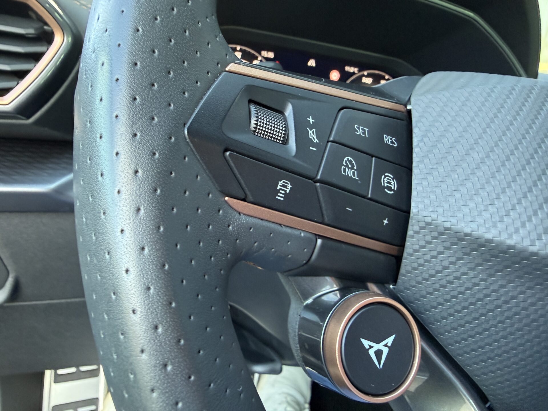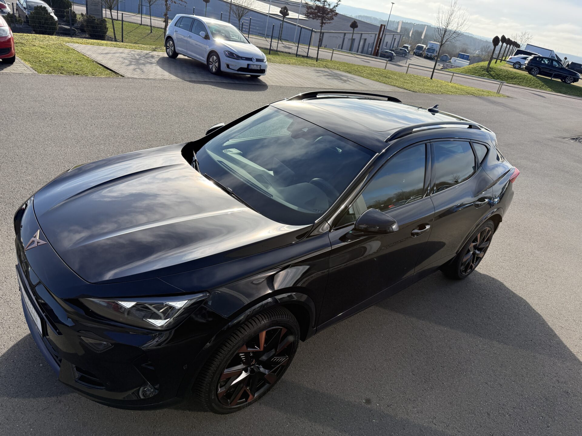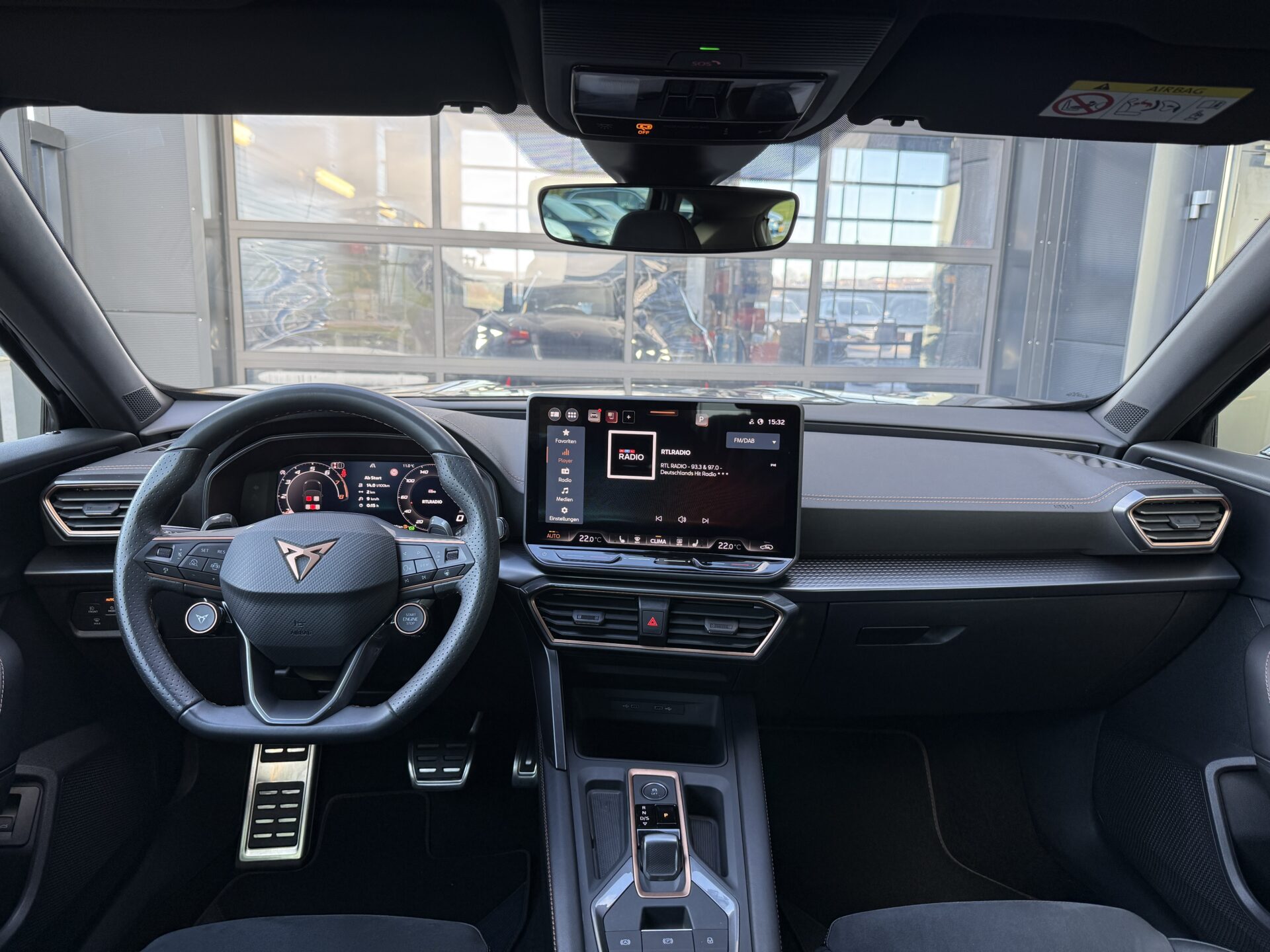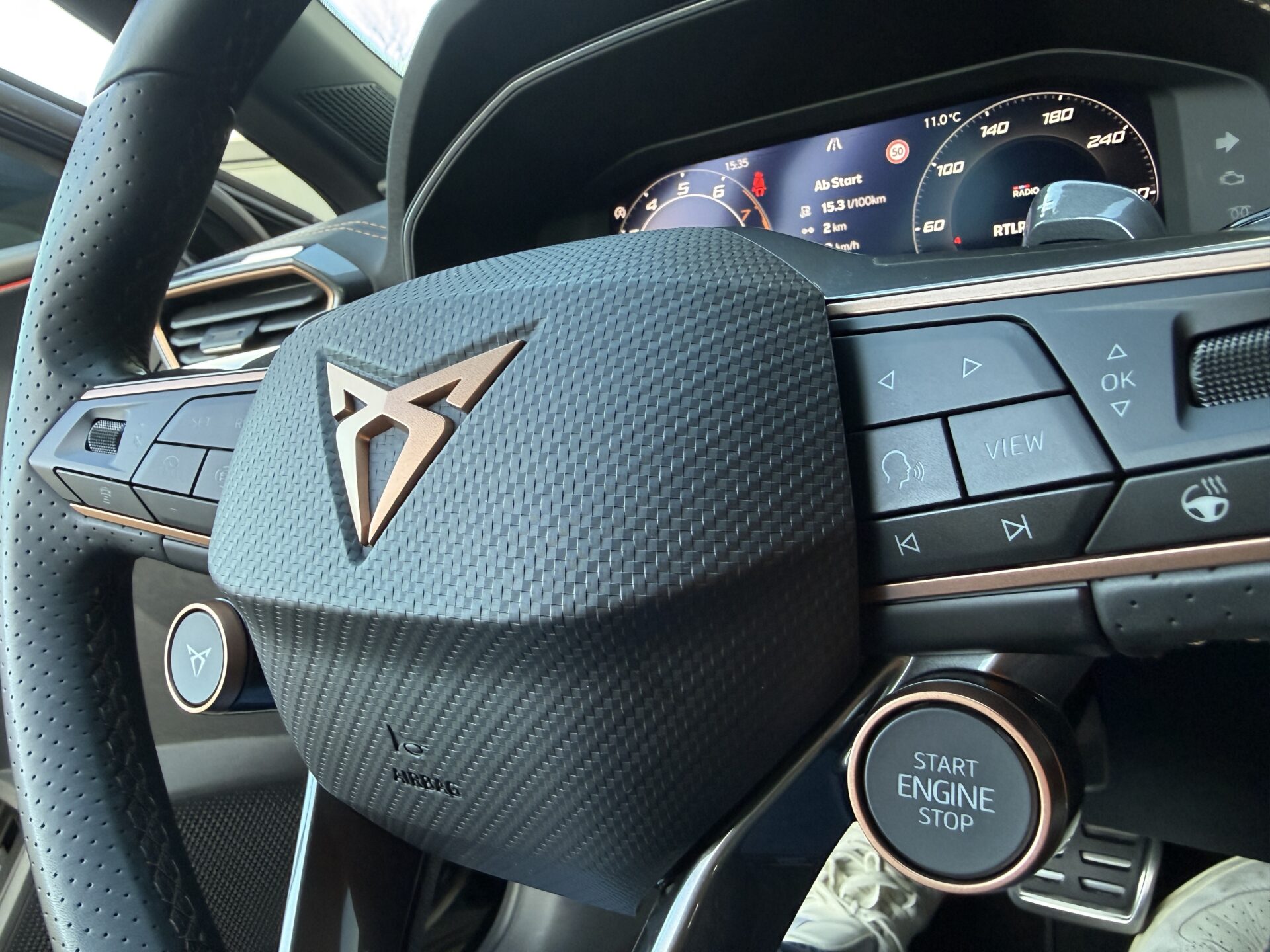 6 Lautsprecher, Abdeckkappen Außenspiegel Schwarz, Airbag Beifahrerseite abschaltbar, Airbag Fahrer-/Beifahrerseite, Außenspiegel elektr. verstell-, heiz- und anklappbar mit Spiegelabsenkung und Welcome Light, Connectivity-Box, Dachhimmel schwarz, Dachreling schwarz, hochglänzend, Differentialsperre (Vorderachse), Einparkhilfe vorn und hinten, Einstiegsleisten vorn beleuchtet, Elektron. Differentialsperre (XDS), Fahrassistenz-System: Fahrprofilauswahl (CUPRA Drive Profile), Fensterheber elektrisch vorn + hinten mit Komfortschaltung, Fensterzierleisten schwarz, Full Link (MirrorLink, Apple CarPlay und Android Auto), Gepäck-/Laderaumboden doppelt, Gepäckraumabdeckung / Rollo, Gepäckraumbeleuchtung (LED), Handschuhfach mit LED-Beleuchtung, Innenausstattung: Interieurleisten Copper, Isofix-Aufnahmen für Kindersitz an Beifahrersitz und Rücksitz (inkl. i-Size-Kindersitze), Karosserie: 5-türig, Klimaanlage Climatronic 3-Zonen, Kombiinstrument digital (virtual cockpit), Kopf-Airbag-System, Kopfstützen hinten (3-fach), Ladekabel mit Schukostecker, Lendenwirbelstütze Sitz vorn links, verstellbar, Lendenwirbelstütze Sitz vorn rechts, verstellbar, Leseleuchten hinten LED, Leseleuchten vorn LED, Licht- und Sicht-Paket, Media-System Plus, Mild-Hybrid 110 kW (Motor 1,5 Ltr. – 110 kW eTSI), Modellpflege, Notrufsystem, Otto-Partikelfilter (OPF), Parkbremse elektrisch mit Auto-Hold-Funktion, Radioempfang digital (DAB+), Radstand Standard, Reifen-Reparaturset, Rücksitzlehne geteilt/klappbar mit Mittelarmlehne und Durchladeeinrichtung, Rücksitzlehnen umklappbar mit Fernentriegelung im Kofferraum, Schadstoffarm nach Abgasnorm Euro 6e, Seitenairbag, Seitenairbag vorn mitte (Central Airbag), Seitenscheiben ab 2.Sitzreihe und Heckscheibe dunkel getönt (Privacy Glass), Seitenscheiben hinten und Heckscheibe abgedunkelt, Sitz vorn links höhenverstellbar, Sitz vorn rechts höhenverstellbar, Sonnenblende links mit Spiegel (beleuchtet), Sonnenblende rechts mit Spiegel (beleuchtet), Start/Stop-Anlage, Steckdose 230V im Gepäckraum, USB-Ladeanschlüsse (2-fach, Typ C) für 2.Sitzreihe, USB-Schnittstelle vorn (2-fach, Typ C), Verzurrösen Koffer-/Laderaum, Warnanlage für Sicherheitsgurt-System, Wärmeschutzverglasung, Sitze: Top-Sportsitze vorn, Seitenscheiben hinten und Heckscheibe abgedunkelt