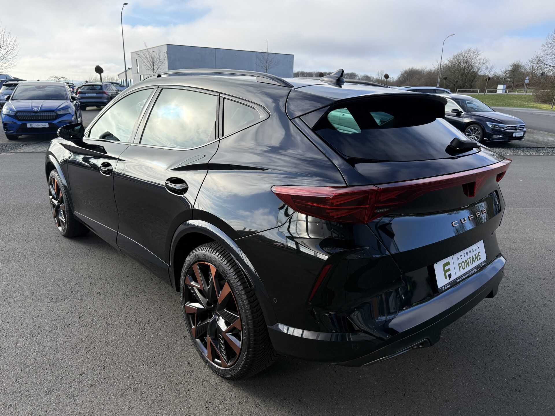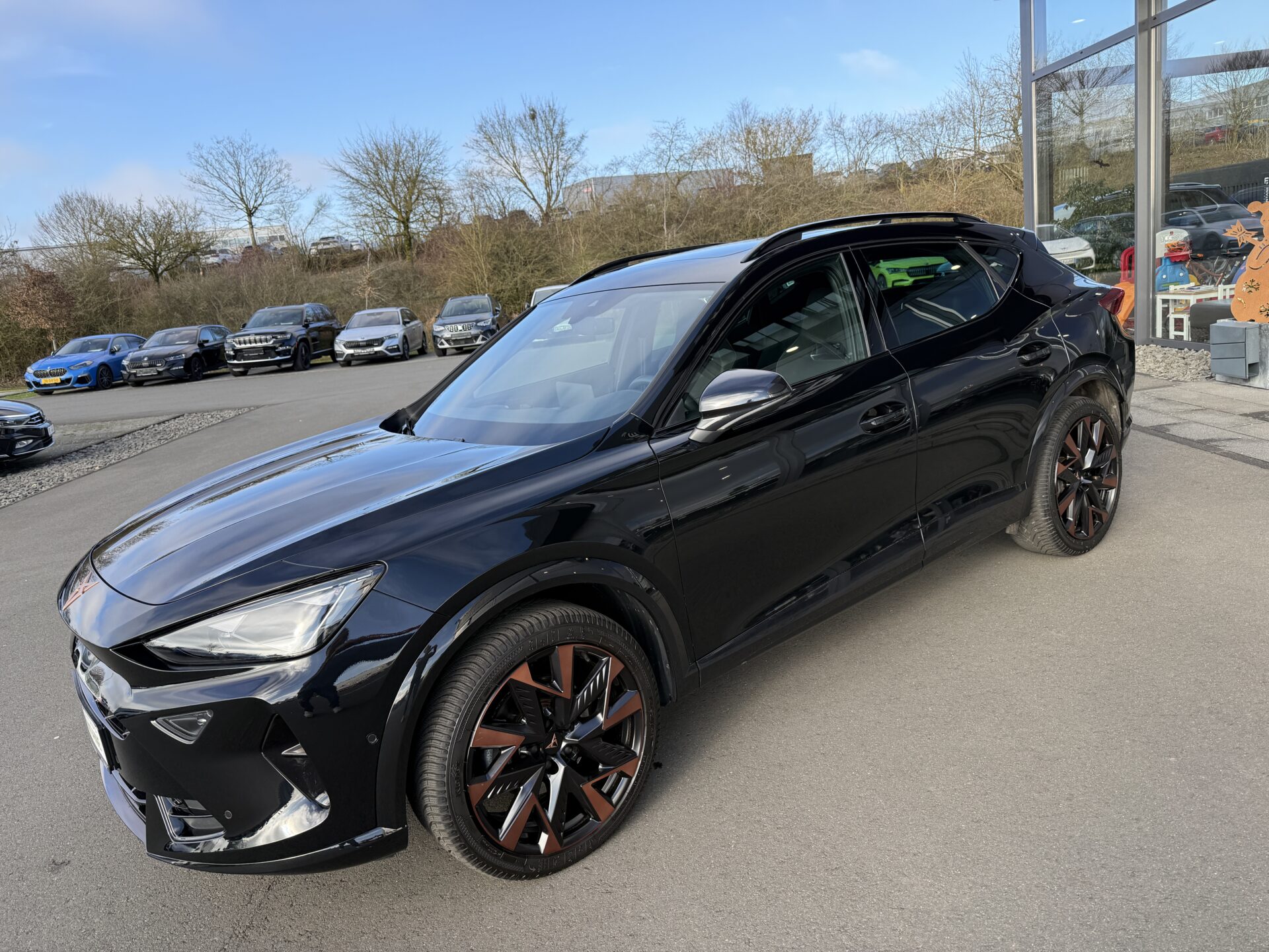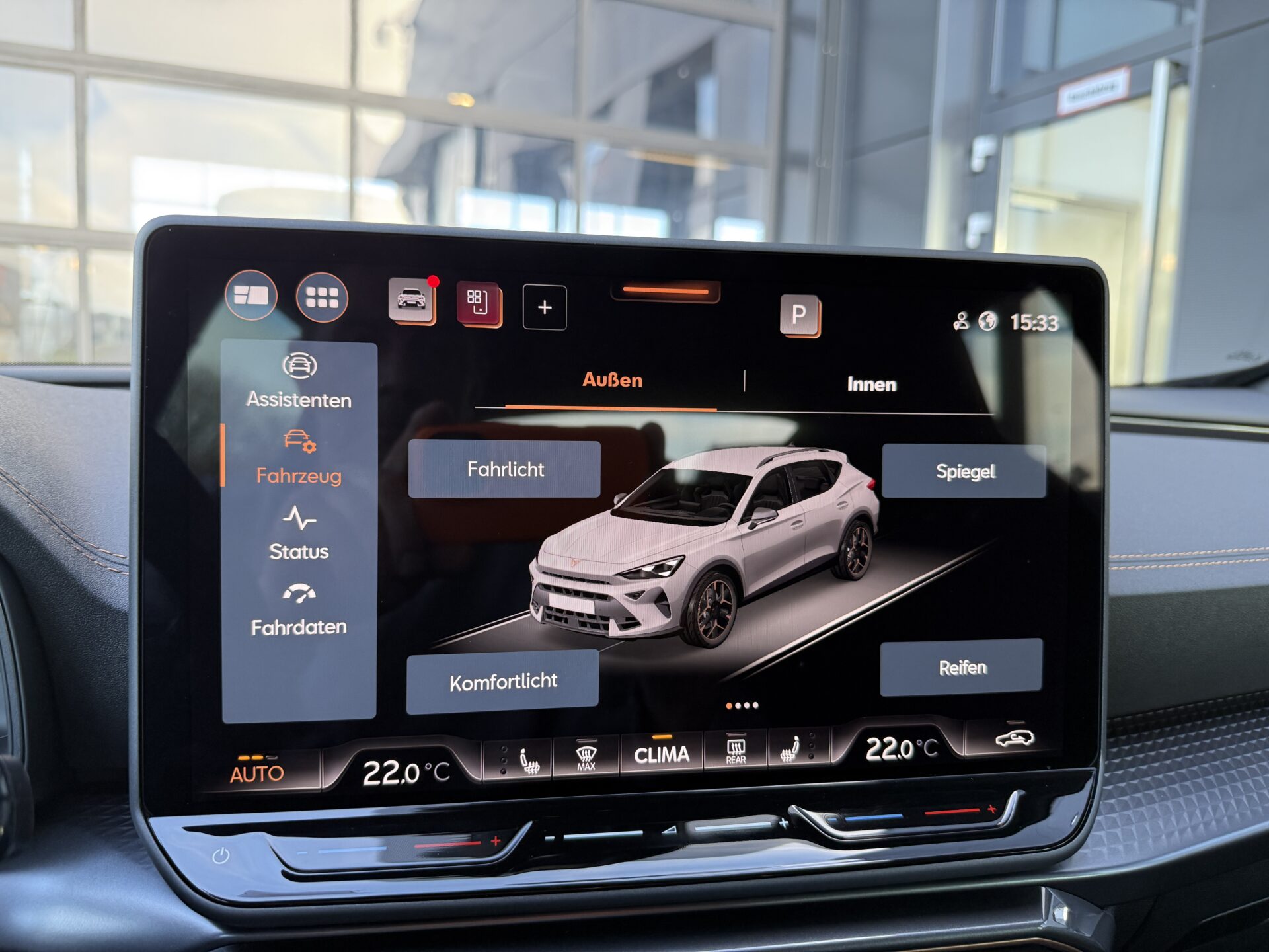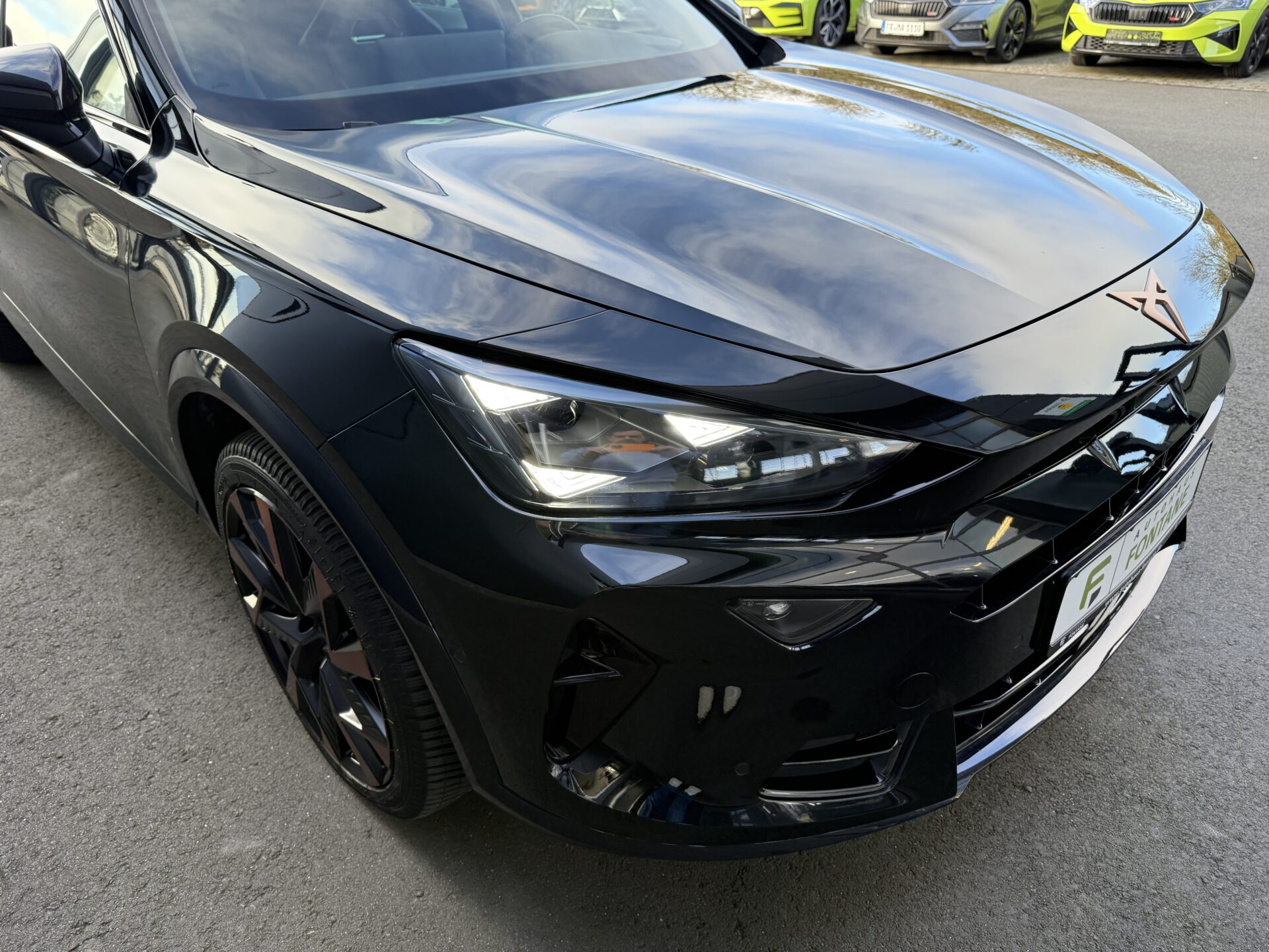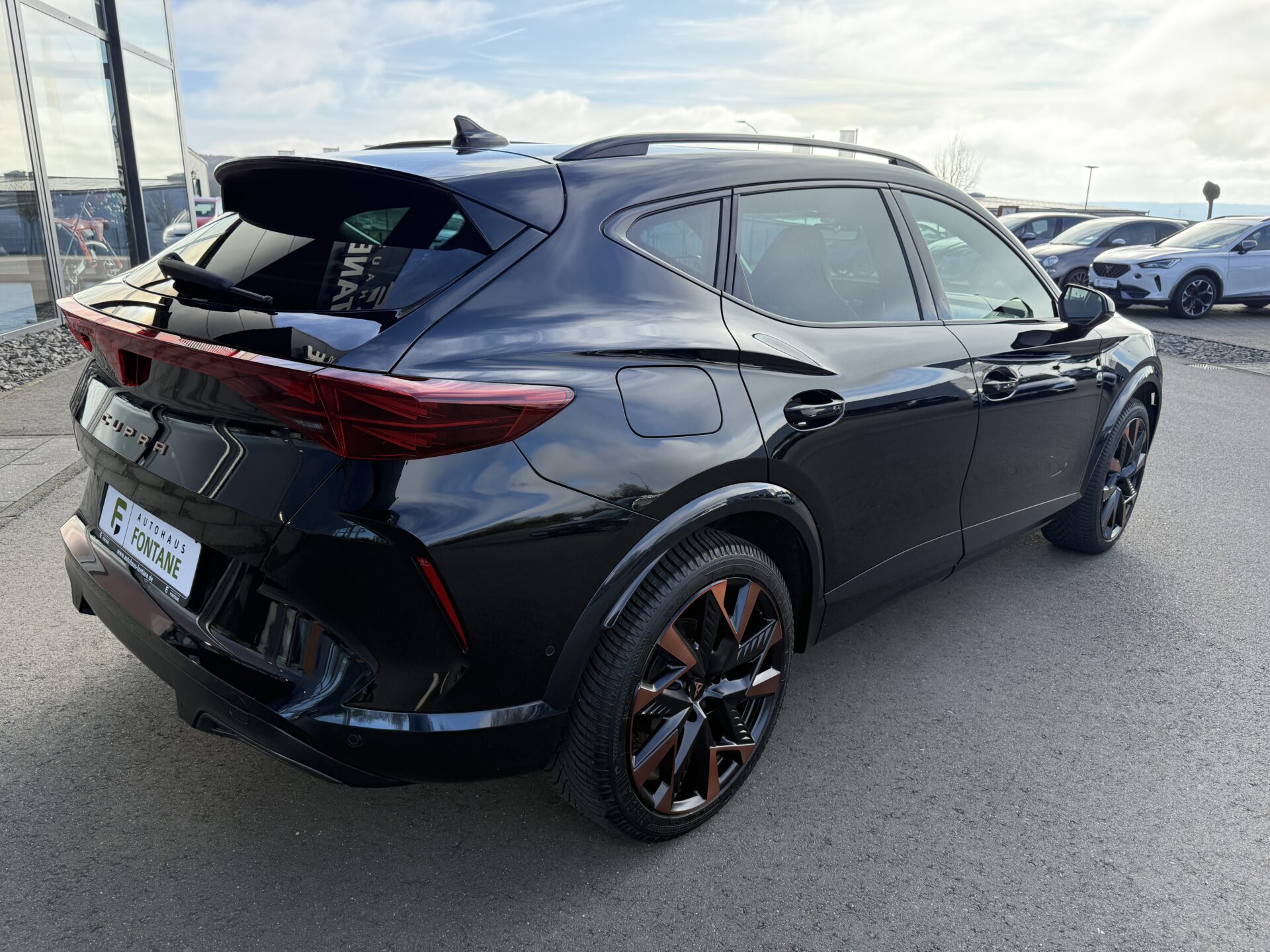 6 Lautsprecher, Abdeckkappen Außenspiegel Schwarz, Airbag Beifahrerseite abschaltbar, Airbag Fahrer-/Beifahrerseite, Außenspiegel elektr. verstell-, heiz- und anklappbar mit Spiegelabsenkung und Welcome Light, Connectivity-Box, Dachhimmel schwarz, Dachreling schwarz, hochglänzend, Differentialsperre (Vorderachse), Einparkhilfe vorn und hinten, Einstiegsleisten vorn beleuchtet, Elektron. Differentialsperre (XDS), Fahrassistenz-System: Fahrprofilauswahl (CUPRA Drive Profile), Fensterheber elektrisch vorn + hinten mit Komfortschaltung, Fensterzierleisten schwarz, Full Link (MirrorLink, Apple CarPlay und Android Auto), Gepäck-/Laderaumboden doppelt, Gepäckraumabdeckung / Rollo, Gepäckraumbeleuchtung (LED), Handschuhfach mit LED-Beleuchtung, Innenausstattung: Interieurleisten Copper, Isofix-Aufnahmen für Kindersitz an Beifahrersitz und Rücksitz (inkl. i-Size-Kindersitze), Karosserie: 5-türig, Klimaanlage Climatronic 3-Zonen, Kombiinstrument digital (virtual cockpit), Kopf-Airbag-System, Kopfstützen hinten (3-fach), Ladekabel mit Schukostecker, Lendenwirbelstütze Sitz vorn links, verstellbar, Lendenwirbelstütze Sitz vorn rechts, verstellbar, Leseleuchten hinten LED, Leseleuchten vorn LED, Licht- und Sicht-Paket, Media-System Plus, Mild-Hybrid 110 kW (Motor 1,5 Ltr. – 110 kW eTSI), Modellpflege, Notrufsystem, Otto-Partikelfilter (OPF), Parkbremse elektrisch mit Auto-Hold-Funktion, Radioempfang digital (DAB+), Radstand Standard, Reifen-Reparaturset, Rücksitzlehne geteilt/klappbar mit Mittelarmlehne und Durchladeeinrichtung, Rücksitzlehnen umklappbar mit Fernentriegelung im Kofferraum, Schadstoffarm nach Abgasnorm Euro 6e, Seitenairbag, Seitenairbag vorn mitte (Central Airbag), Seitenscheiben ab 2.Sitzreihe und Heckscheibe dunkel getönt (Privacy Glass), Seitenscheiben hinten und Heckscheibe abgedunkelt, Sitz vorn links höhenverstellbar, Sitz vorn rechts höhenverstellbar, Sonnenblende links mit Spiegel (beleuchtet), Sonnenblende rechts mit Spiegel (beleuchtet), Start/Stop-Anlage, Steckdose 230V im Gepäckraum, USB-Ladeanschlüsse (2-fach, Typ C) für 2.Sitzreihe, USB-Schnittstelle vorn (2-fach, Typ C), Verzurrösen Koffer-/Laderaum, Warnanlage für Sicherheitsgurt-System, Wärmeschutzverglasung, Sitze: Top-Sportsitze vorn, Seitenscheiben hinten und Heckscheibe abgedunkelt