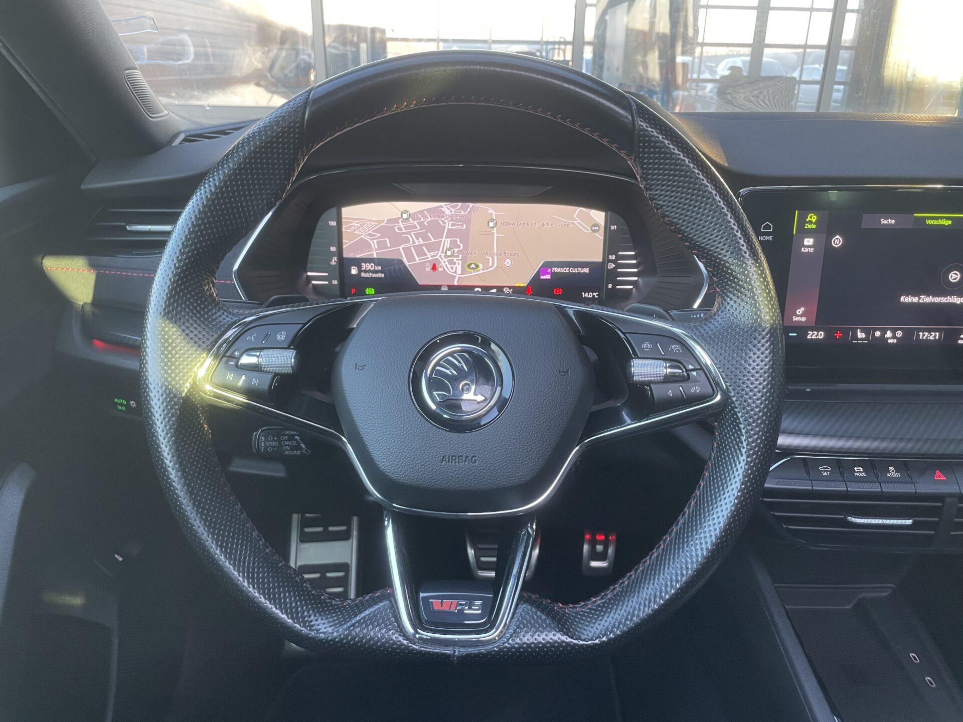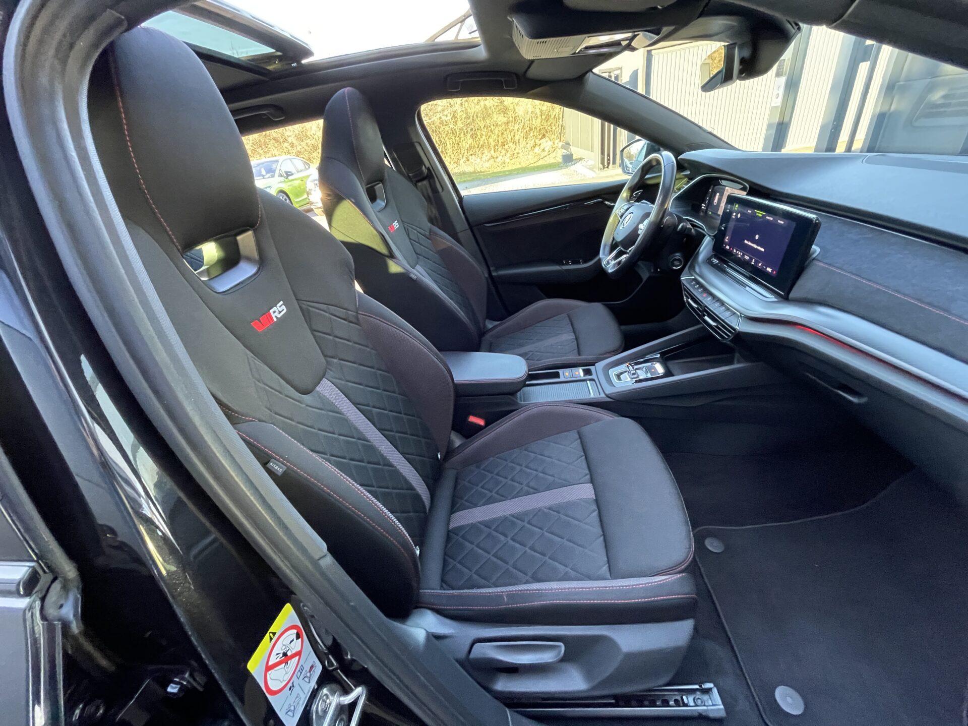 8 Lautsprecher, Ablagefach für Regenschirm, Ablagefach mit Cargo-Organizer (Gepäck-/Laderaum), Ablagetasche an Vordersitzlehnen, Airbag Beifahrerseite abschaltbar, Airbag Fahrer-/Beifahrerseite, Ambiente-Beleuchtung LED, Antriebs-Schlupfregelung (ASR), Außenspiegel elektr. anklappbar, Außenspiegel elektr. verstell- und heizbar, Außenspiegel mit Abblendautomatik, links, Außenspiegel schwarz lackiert, Bordcomputer, Bremsassistent, Bremsenergierückgewinnung, Dachhimmel schwarz, Dachreling schwarz, hochglänzend, Differentialsperre (Vorderachse), Doppeltonfanfare, Edelstahlpedale Sportdesign, Einparkhilfe vorn und hinten, Einstiegsleisten (Aluminium-Design), Elektron. Querdifferentialsperre (XDS), Fahrassistenz-System: Abbiegebremsfunktion und Ausweichunterstützung, Fahrassistenz-System: Auffahrwarnsystem mit City-Notbremsfunktion (Frontradar-Assistent), Fahrassistenz-System: Berganfahr-Assistent (Hill-Holder), Fahrassistenz-System: Fahrprofilauswahl, Fahrassistenz-System: Multikollisionsbremse (Multi Collision Brake), Fahrassistenz-System: Spurhalteassistent (Lane Assist), Fensterheber elektrisch vorn + hinten, Fensterzierleisten schwarz, hochglänzend, Freisprechanlage Telefon mit Bluetooth, Frontkamera, Fußraumbeleuchtung vorn und hinten, Gepäckraumabdeckung / Rollo, Geschwindigkeits-Regelanlage (Tempomat) inkl. Geschwindigkeits-Begrenzeranlage, Heckleuchten LED (Kristallglas-Optik), Heckscheibenwischer, Heckspoiler (Hecktür / Kofferdeckel), Innenausstattung: Dekoreinlagen Dark Carbon, Innenspiegel mit Abblendautomatik, Isofix-Aufnahmen für Kindersitz an Beifahrersitz, Isofix-Aufnahmen für Kindersitz an Rücksitz, Karosserie: 5-türig, Kennzeichenbeleuchtung LED, Kindersicherung elektr. betätigt, Klimaanlage Climatronic 2-Zonen, Knieairbag Fahrerseite, Kombiinstrument digital (virtual cockpit), Kopf-Airbag-System, Kühlergrill schwarz, Lehnenentriegelung der Rücksitzlehne im Kofferraum, Lendenwirbelstütze Sitz vorn links, Lendenwirbelstütze Sitz vorn rechts, Lenkrad (Sport/Leder – 3-Speichen, unten abgeflacht) mit Multifunktion, Lenksäule (Lenkrad) verstellbar (vertikal / axial), Licht- und Regensensor, Lichtassistent (Coming Home, Leaving Home), Mittelarmlehne hinten, Motor 2,0 Ltr. – 147 kW TDI, Nebelscheinwerfer LED, Notrufsystem, Parkbremse elektronisch, Phonebox, Progressivlenkung, Radioempfang digital (DAB+), Reifen-Reparaturkit, Reifendruck-Kontrollsystem, Rücksitzlehne geteilt/klappbar, Schadstoffarm nach Abgasnorm Euro 6d, Scheibenwaschdüsen heizbar, Scheinwerfer LED mit adaptiver Lichtverteilung (AFS), Seitenairbag vorn, Seitenairbag vorn mitte (Center-Airbag), Seitenscheiben hinten und Heckscheibe abgedunkelt (SunSet), Service-System: Remote Services, Sitz vorn links höhenverstellbar, Sitz vorn rechts höhenverstellbar, Sitzbezug / Polsterung: Stoff RS schwarz mit Ziernaht, Sitzheizung vorn, SmartLink (MirrorLink, Apple CarPlay und Android Auto), Sonnenblenden mit Spiegel (LED-Beleuchtung), Sport-Fahrwerk, Sportsitze, Sprachsteuerung für Infotainment-System, Start/Stop-Anlage, Steckdose (12V-Anschluß) im Koffer-/Laderaum, Textilfussmatten, Türen mit Warnleuchte, Türgriffe innen verchromt, USB-Schnittstelle vorn (2-fach, Typ C), Verglasung getönt, Verzurrösen Koffer-/Laderaum, Warnanlage für Sicherheitsgurte hinten, Warnanlage für Sicherheitsgurte, Fahrer-/Beifahrerseite, Wireless SmartLink, Zentralverriegelung / Startanlage Kessy-Go, Digital Cockpit Pro, Innenspiegel automatisch abblendend, Rückfahrkamera Rear View, Seitenscheiben hinten und Heckscheibe abgedunkelt, Sitzheizung vorn