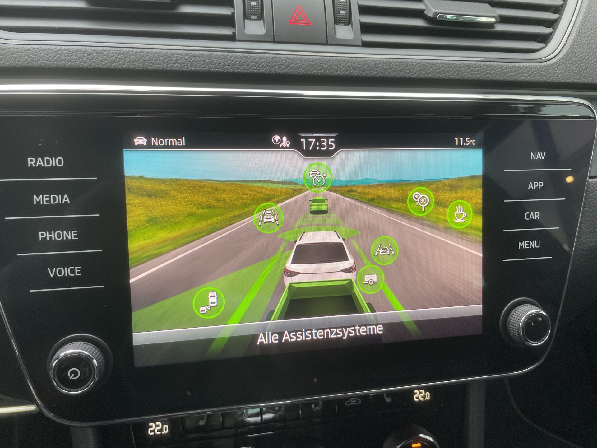 Einparkhilfe vorn und hinten, Fahrassistenz-System: Autom. Distanzregelung (ACC) mit Frontradar-Assistent (bis 210 km/h), Fahrassistenz-System: Müdigkeitserkennung, Fahrassistenz-System: Verkehrszeichenerkennung, Insassen-Schutzsystem proaktiv, Klimaanlage Climatronic 3-Zonen, Laderaumboden variabel, Metallic-Lackierung, Progressivlenkung, Rückfahrkamera, Sport-Fahrwerk
